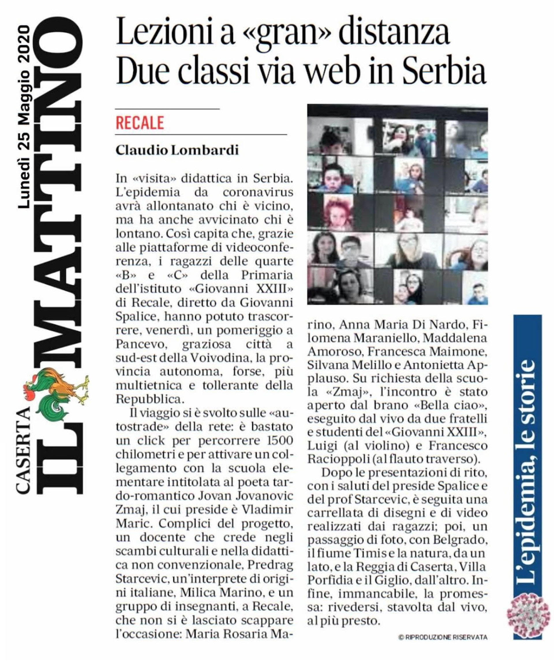 Italijanska štampa o zajedničkom času italijanskih i srpskih đaka u vreme korone
